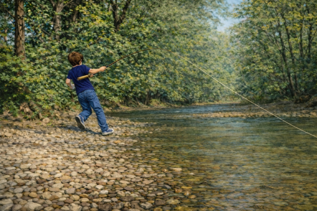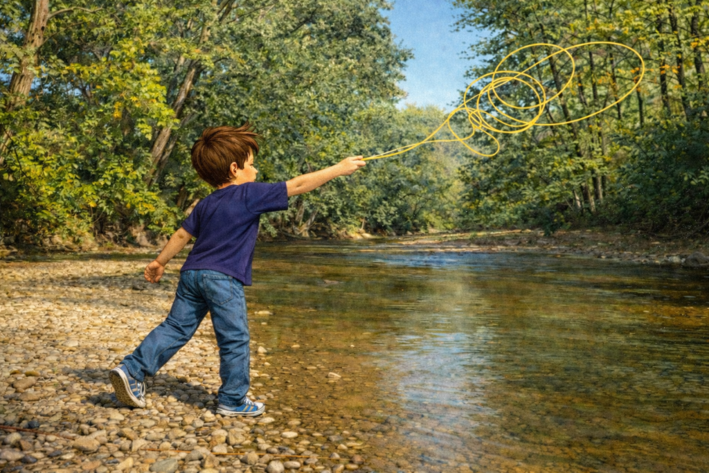 The first time I tried, I didn’t even use the rod properly. I held coils of line in one hand and threw them out over the creek because I didn’t know any better. It wasn’t pretty. It wasn’t technical.