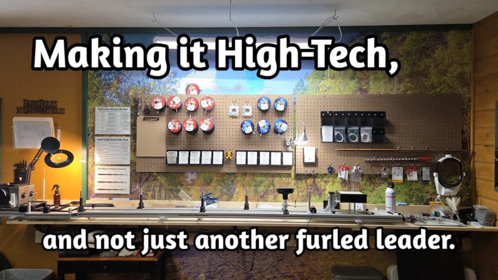 I design and build my own gear. I’ve spent years developing high-tech tapered furled leaders and the machines to produce them. I teach what I learn. I share what works. I’m not here to chase trends. I’m here to improve function.